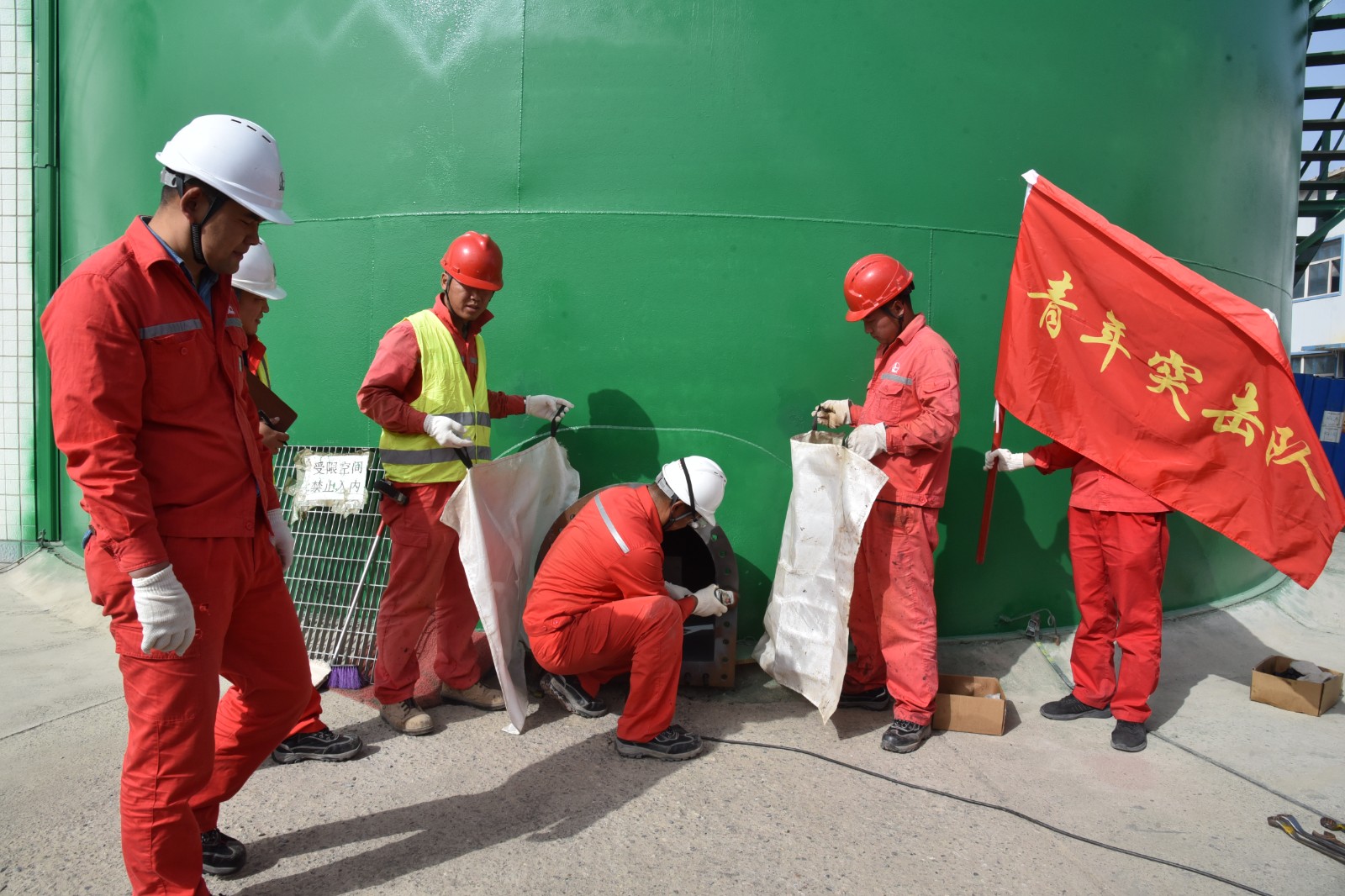 2024年初,三号联合站1号储油罐和2号储油罐检修人手紧张,项目部广大青年员工积极参与,打出了一系列高效施工的“组合拳”,实现了半年时间完成2个5000方储罐的检修任务。此次施工较过去相比,检修工期缩短了三分之一,刷新了多项检修记录,彰显出了青年员工的朝气与活力。